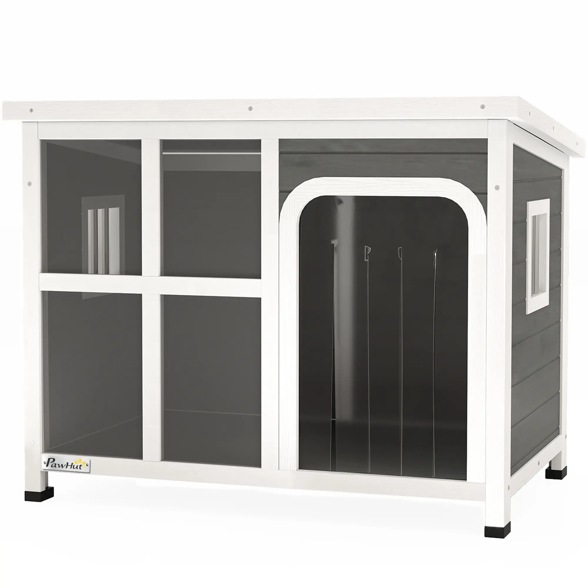 PetHat Casetta per Cani con Finestrelle e Ingresso a Tenda, in Legno di Abete, 90x62x71 cm, Grigio Chiaro