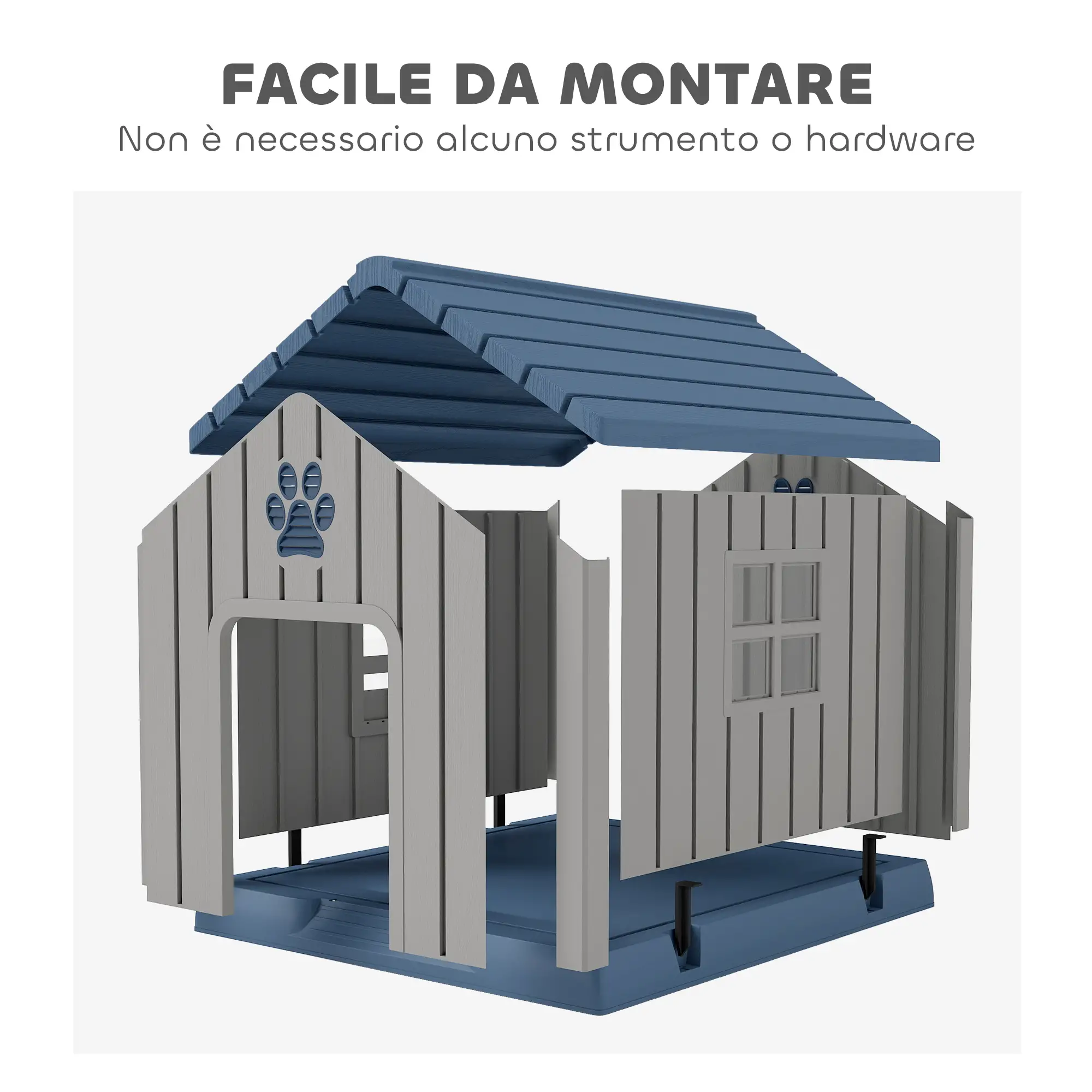 PetHat Casetta per Cani Taglia Media da Esterno Impermeabile con Base Rialzata e Finestre, 85x79x82 cm, Grigio