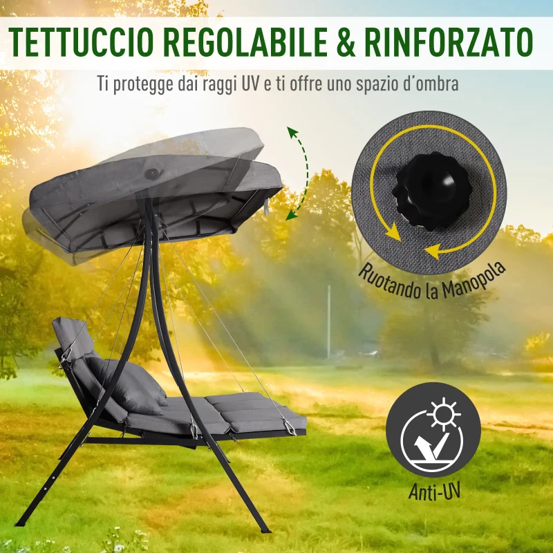 • Dondolo 3 posti perfetto per ambienti esterni come il giardino, il terrazzo o il cortile