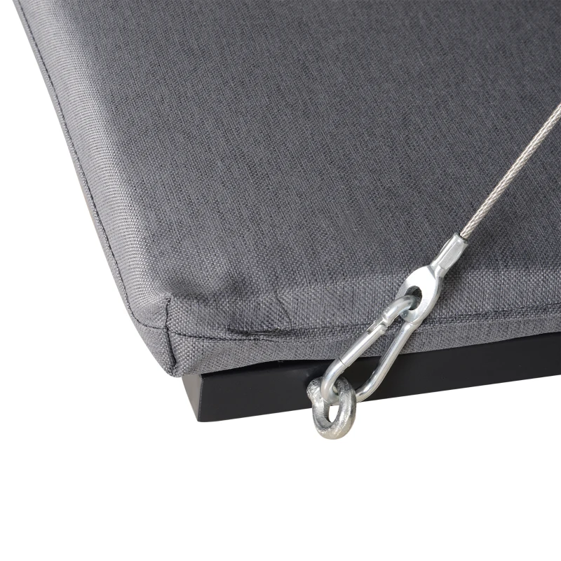 • I cuscini delle sedute sono super imbottiti e rivestiti in poliestere, con lacci per fissarli