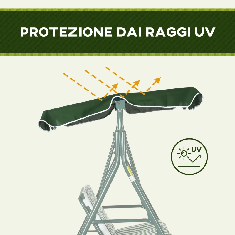 Outsunny Dondolo da Giardino 3 Posti in Acciaio e Teslin con Tetto Parasole, 172x110x153 cm, Bianco e Verde