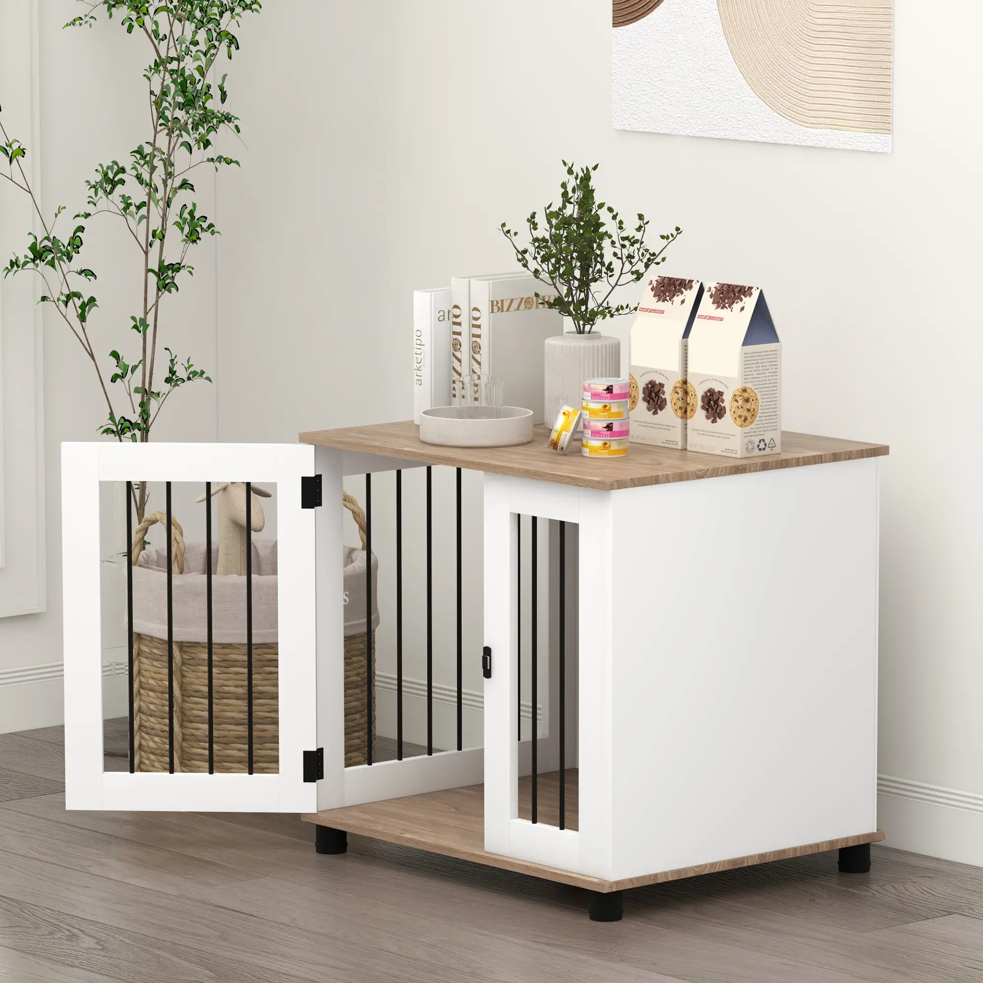 PetHat Gabbia per Cani 2 in 1 con Tavolino con 1 Porta Bloccabile, 73L x 60l x 68H cm, Marrone