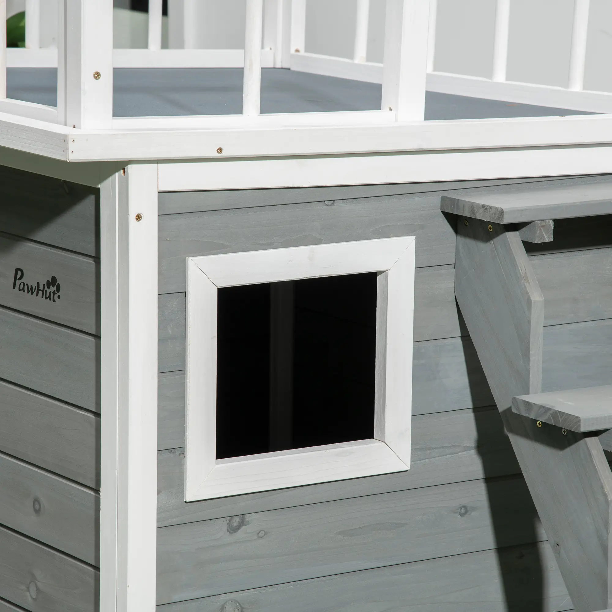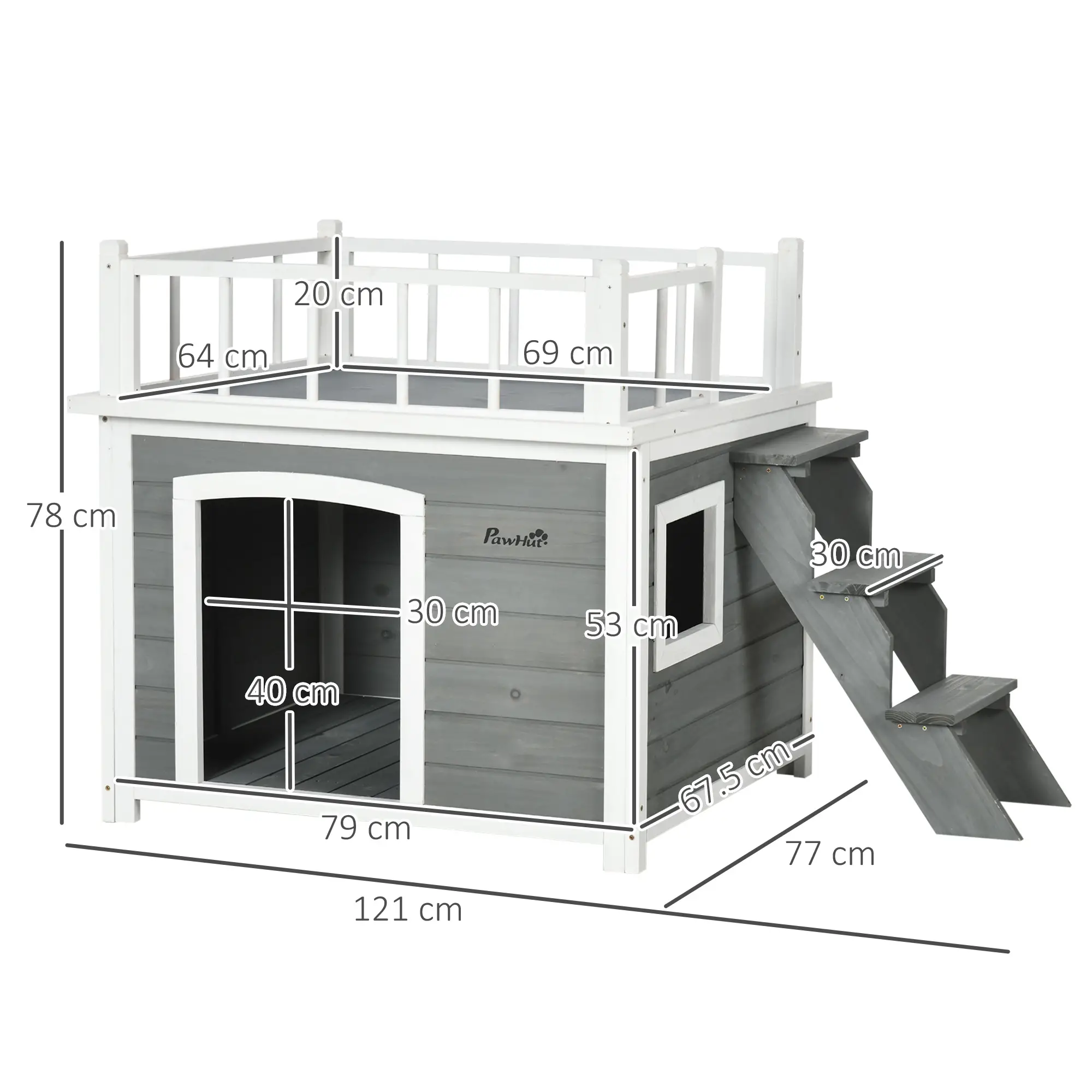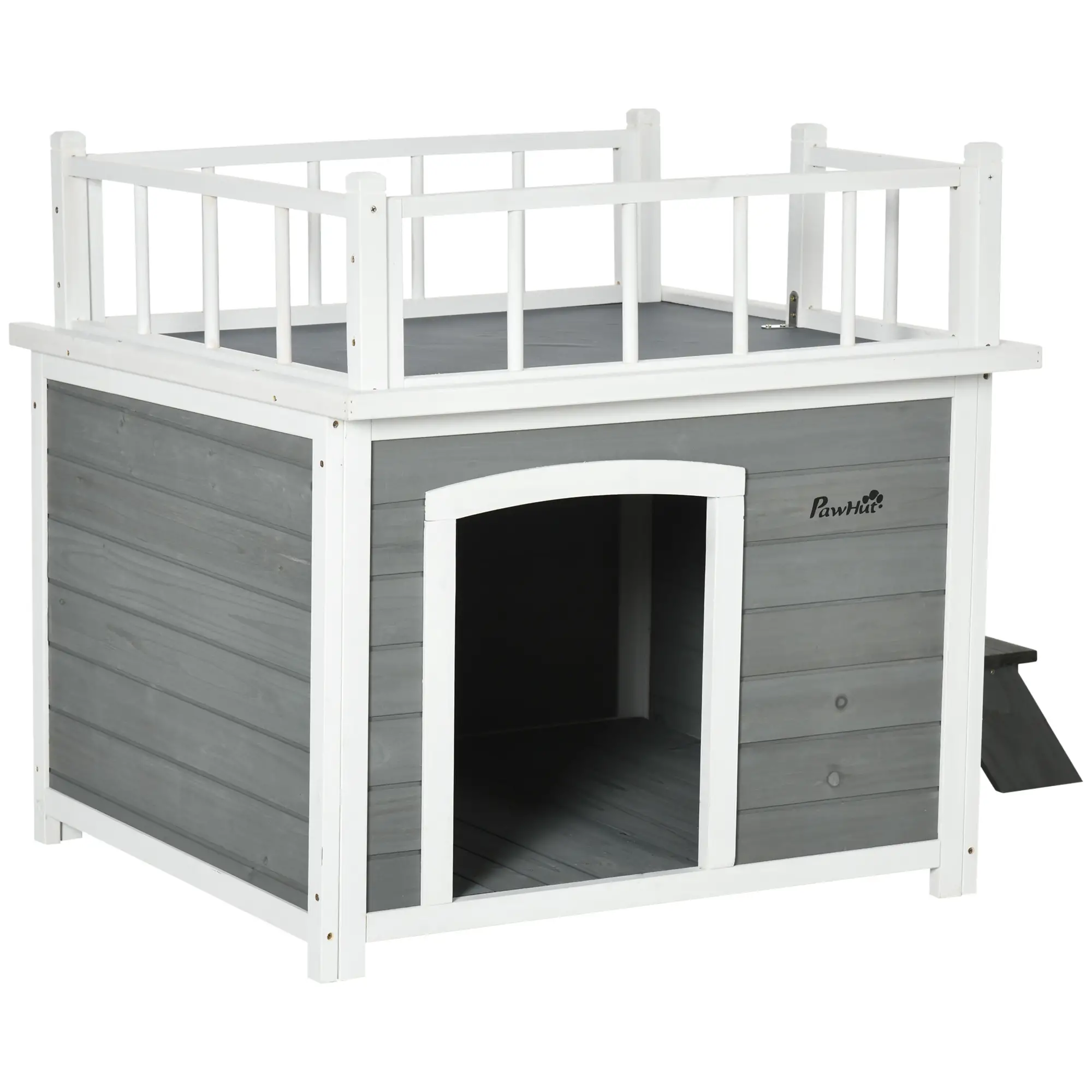 PetHat Casetta per Cani con Terrazza Scaletta e Finestra 121x77x78cm Grigio chiaro