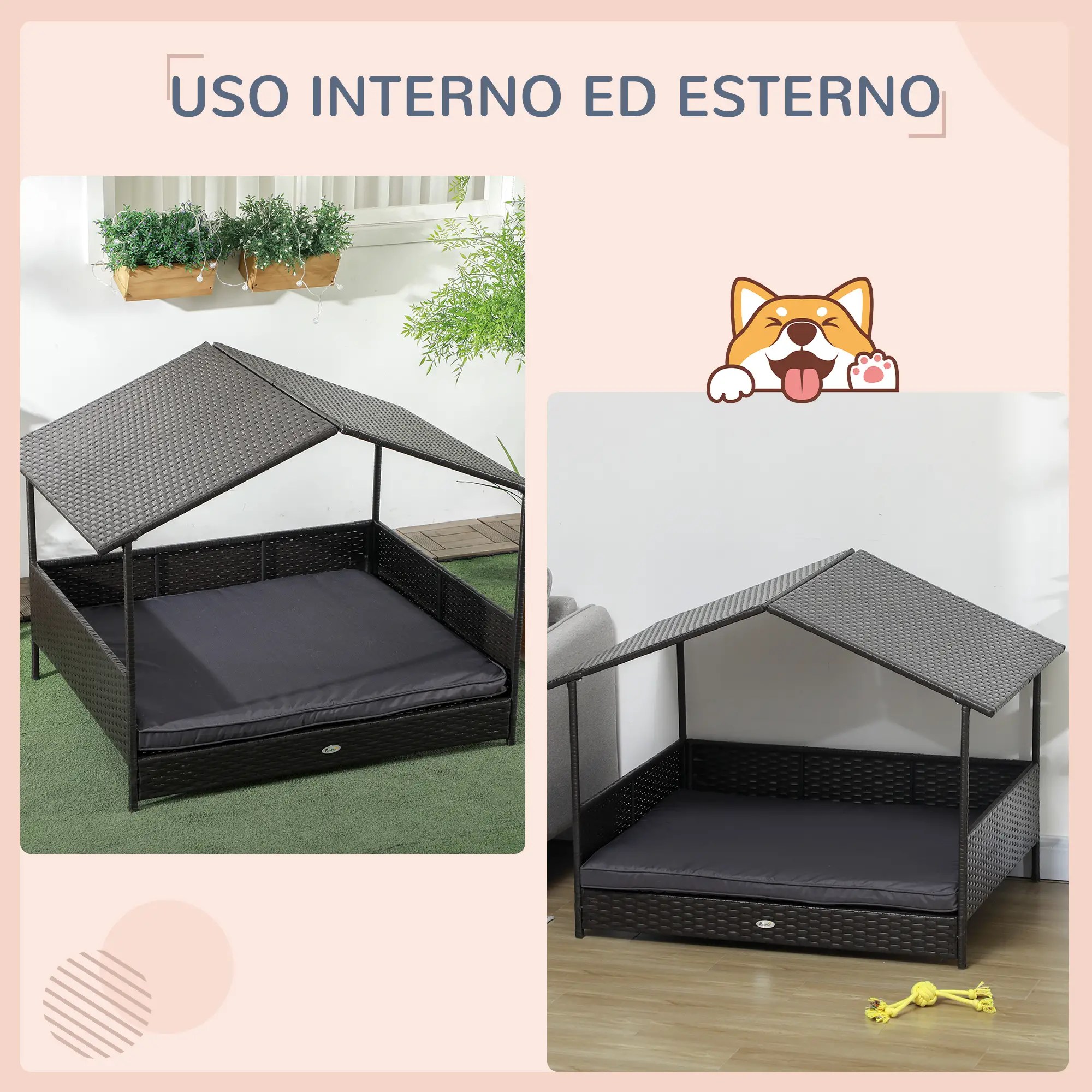 • Casetta cani in rattan e acciaio per una maggiore stabilità