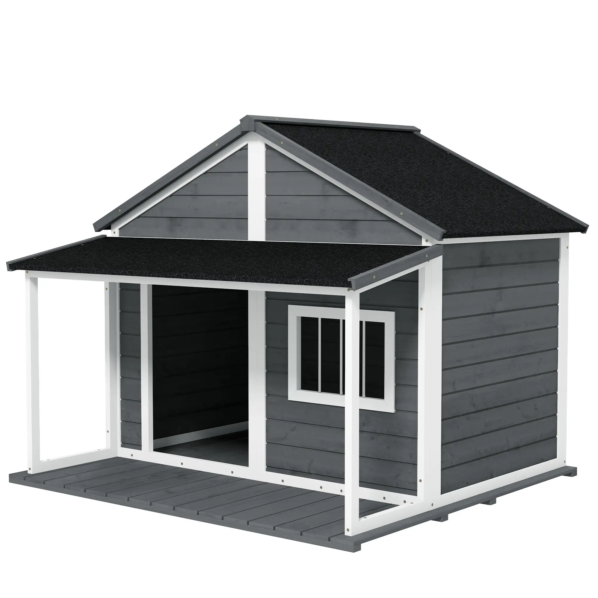 PetHat Cuccia per Cani da Esterno con Terrazza, Finestra e Tetto Impermeabile, 124x112x105cm, Grigio