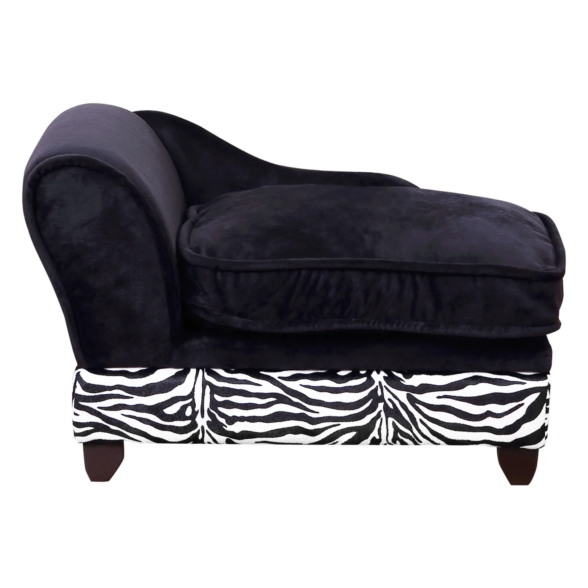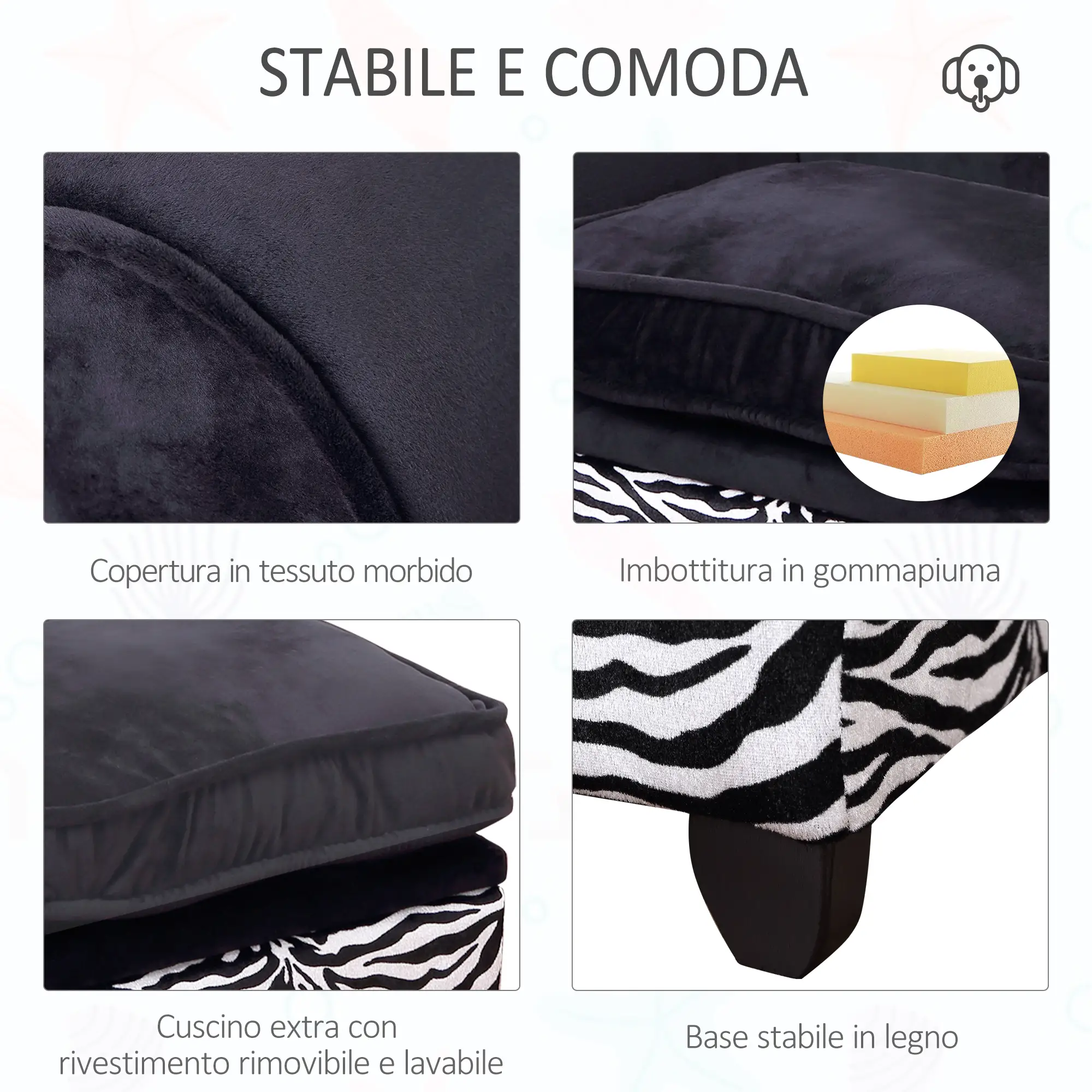 PetHat Divano per Cani di Taglia Piccola e Media con Spazio Portaoggetti, in Legno e Peluche, 57x34x36 cm, Bianco e Nero