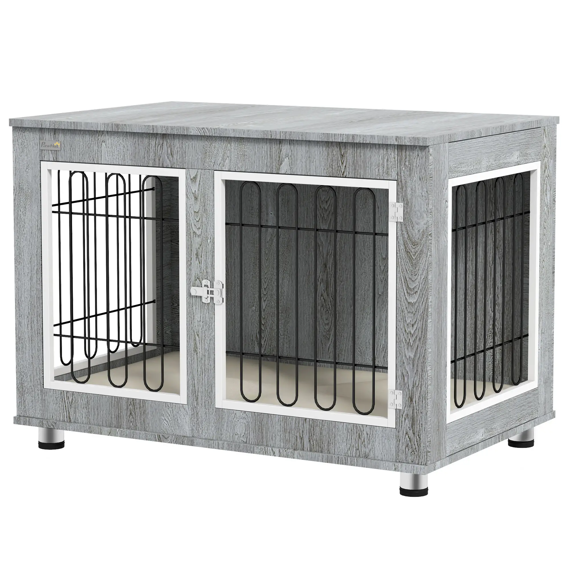 PetHat Gabbia per Cani con Vassoio Rimovibile, in Acciaio Effetto Legno, 90 x 58 x 65 cm, Grigio