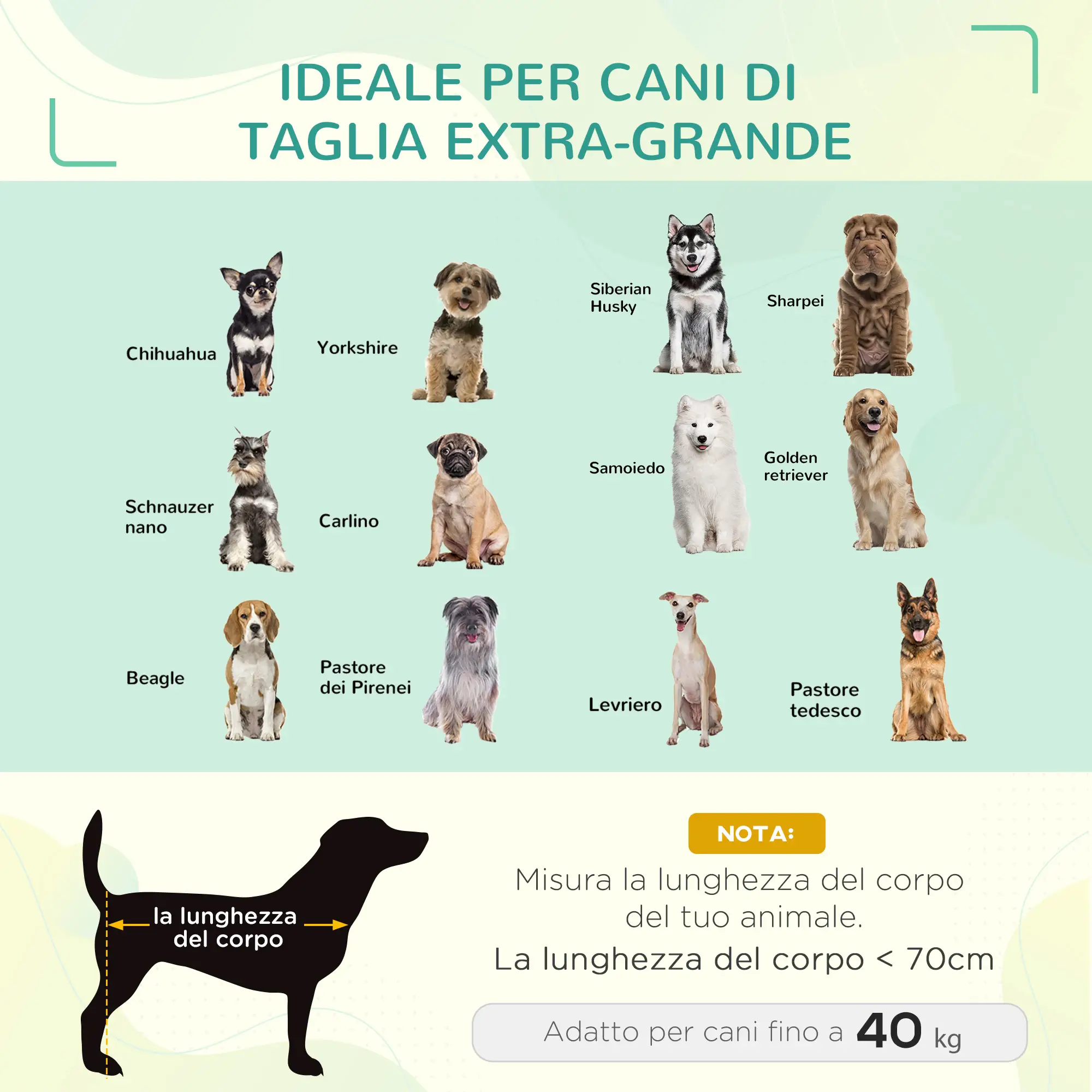 • Ideale per cani di taglia grande con lunghezza del corpo inferiore a 70 cm e peso inferiore a 40 kg
