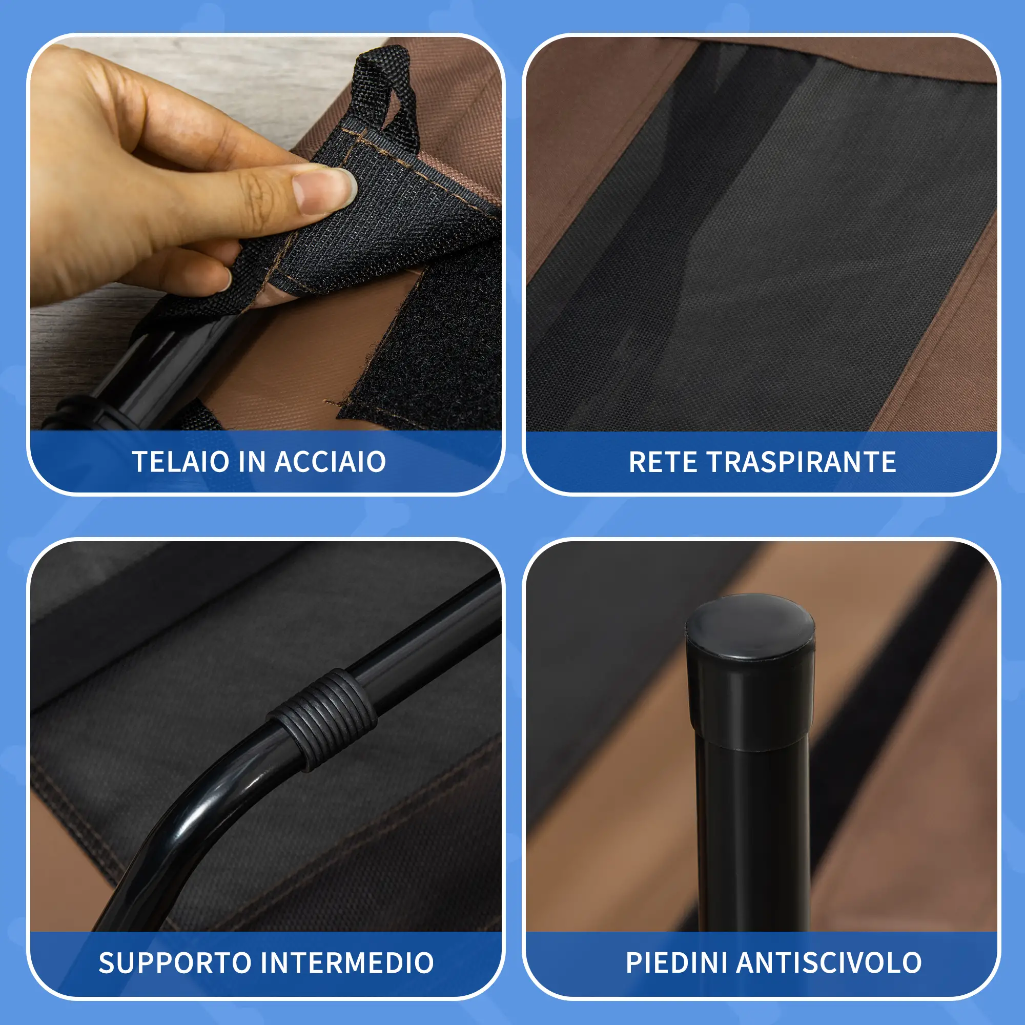 Regala ai tuoi animali domestici il miglior sonno possibile con il letto per cani rialzato PetHat. Questa cuccia rialzata è adatta a far dormire i tuoi pelosi sia in casa che fuori. Il telaio in acciaio, leggero ma robusto, con una rete traspirante facile da pulire, mantiene gli animali domestici rilassati e al sicuro. Questo lettino per animali è in grado di sostenere fino a 50kg di peso, mantenendoli freschi grazie a un'adeguata ventilazione.