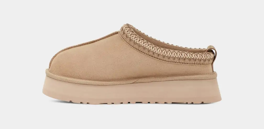 Questo è il paio di sabot che stavi cercando. La suola con plateau offre qualche centimetro in più e una calzata (segretamente) stabile. La fodera e la soletta sono realizzate con il lussuoso UGGplush™, che avvolge il piede in una morbidezza da sogno ed è in grado di assorbire l’umidità. I giocosi dettagli in UGGbraid regalano poi un look UGG esclusivo. Possiamo affermare con certezza che chi ama le Tasman, ama le Tazz. Questo prodotto presenta una suola in EVA da canna da zucchero, realizzata con un composto responsabile a base di schiuma da canna da zucchero che ci consente di ridurre la dipendenza dai combustibili fossili sostituendo l’etilene a base di petrolio, o una suola Treadlite by UGG™. Questo prodotto è stato realizzato presso uno stabilimento che supporta le donne nel nostro processo di produzione e distribuzione con l’aiuto dell’iniziativa HERproject. Si tratta di un progetto che crea collaborazioni con brand come il nostro per fornire strumenti e formazione alle donne sul luogo di lavoro.