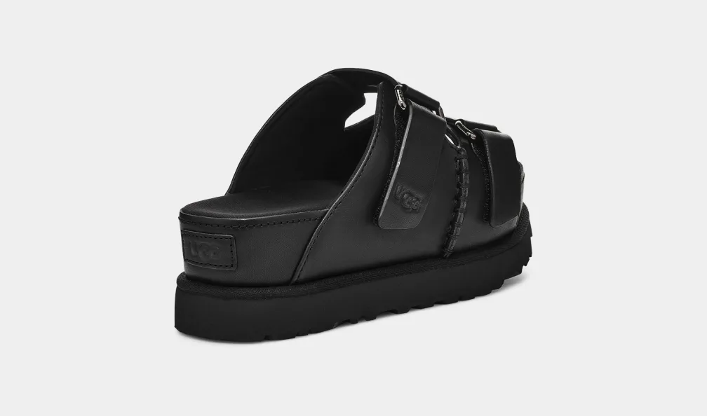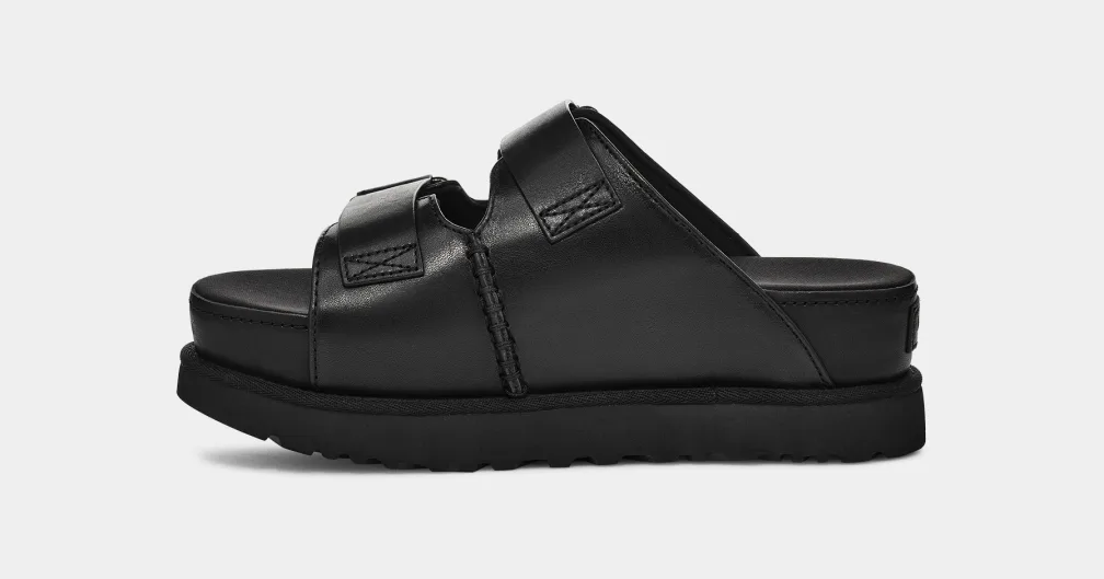 Il comfort impareggiabile di UGG®. Energia straordinaria. È sempre il momento giusto per indossare un modello con plateau. Le ciabatte Goldenstar Hi presentano una base in EVA da canna da zucchero e sono estremamente leggere e comode. Avvolgono il piede con la tomaia in pelle imbottita e la soletta in tessuto, regalando momenti di autentica estasi. Le ciabatte Goldenstar Hi sono completamente regolabili ed estremamente ammortizzate, per un look raffinato da mattina a sera.