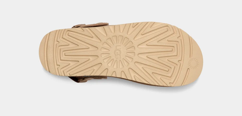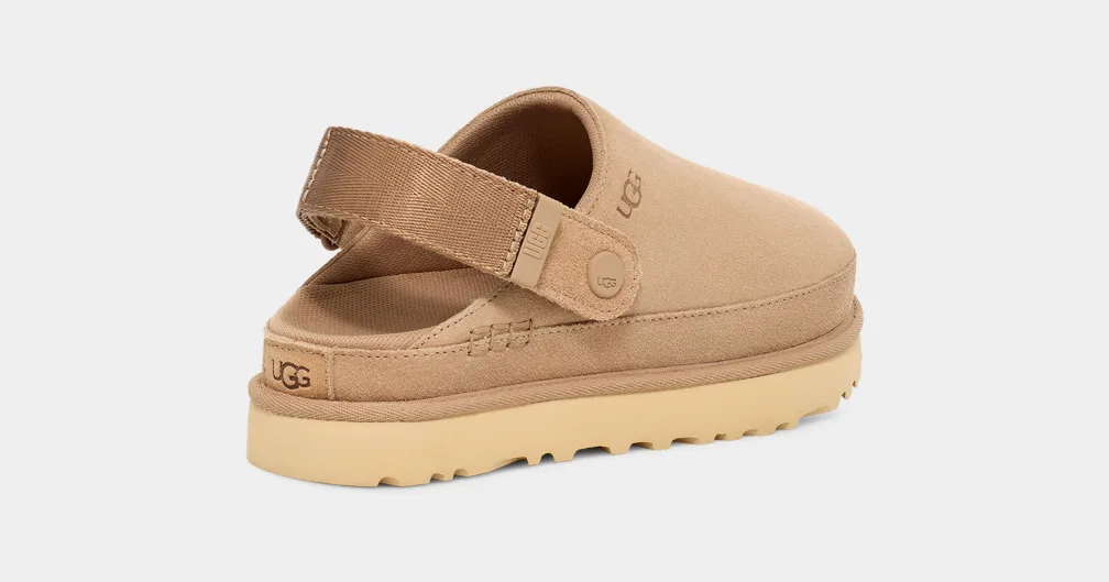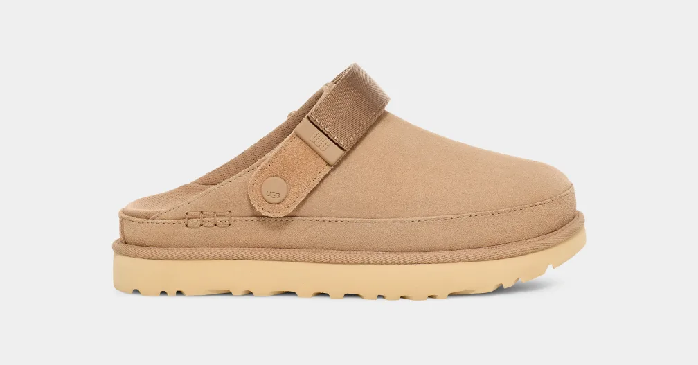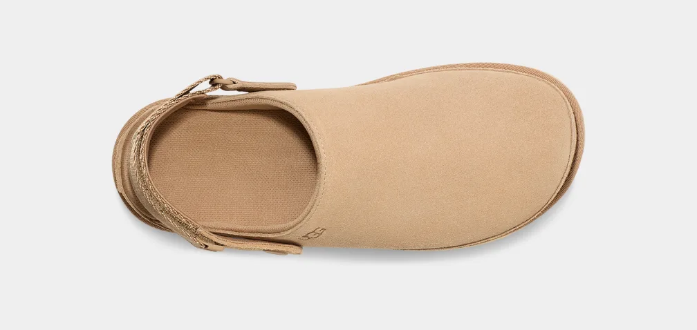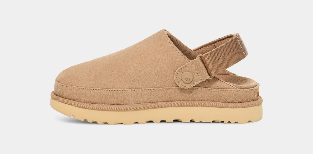 Realizzato in pelle scamosciata vellutata, questo versatile sabot con plateau si abbina a tutto. Se sei alla ricerca di un comodo sabot, il modello Goldenstar è la scelta giusta! Il cinturino sul tallone è caratterizzato da un design orientabile per due modalità di calzata: portalo sul tallone oppure abbassato sulla mascherina per indossare e togliere il sabot più facilmente. La suola ultraleggera garantisce ammortizzazione e supporto per tutto il giorno. Questo prodotto presenta una suola in EVA da canna da zucchero, realizzata con un composto responsabile a base di schiuma da canna da zucchero che ci consente di ridurre la dipendenza dai combustibili fossili sostituendo l’etilene a base di petrolio, o una suola Treadlite by UGG™.