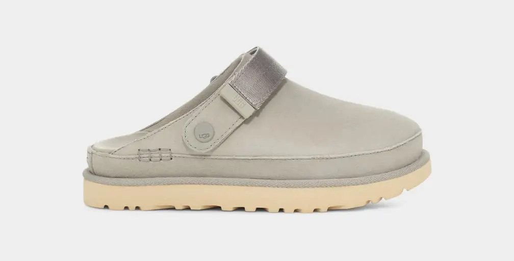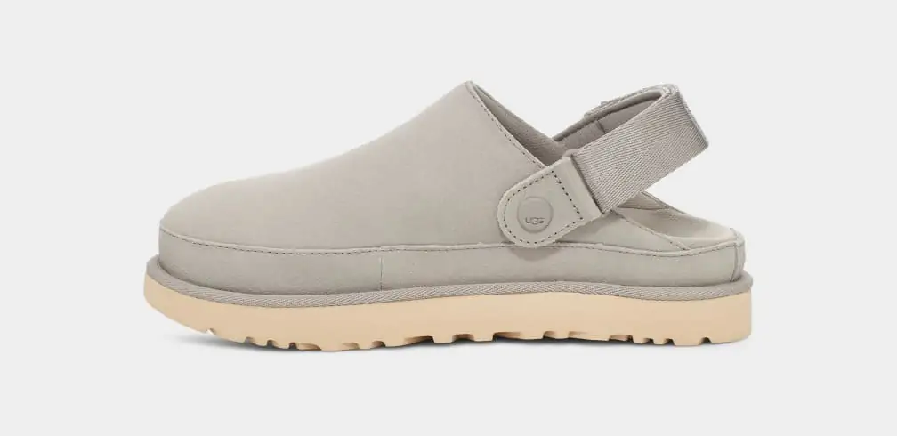 Realizzato in pelle scamosciata vellutata, questo versatile sabot con plateau si abbina a tutto. Se sei alla ricerca di un comodo sabot, il modello Goldenstar è la scelta giusta! Il cinturino sul tallone è caratterizzato da un design orientabile per due modalità di calzata: portalo sul tallone oppure abbassato sulla mascherina per indossare e togliere il sabot più facilmente. La suola ultraleggera garantisce ammortizzazione e supporto per tutto il giorno. Questo prodotto presenta una suola in EVA da canna da zucchero, realizzata con un composto responsabile a base di schiuma da canna da zucchero che ci consente di ridurre la dipendenza dai combustibili fossili sostituendo l’etilene a base di petrolio, o una suola Treadlite by UGG™.