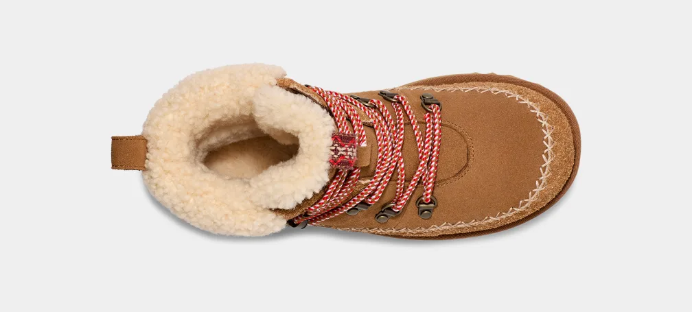 · Occhielli in metallo, tirante posteriore, ganci per allacciatura rapidi, collarino in montone arricciato (10 mm), dettagli UGGbraid, elemento antifango in pelle