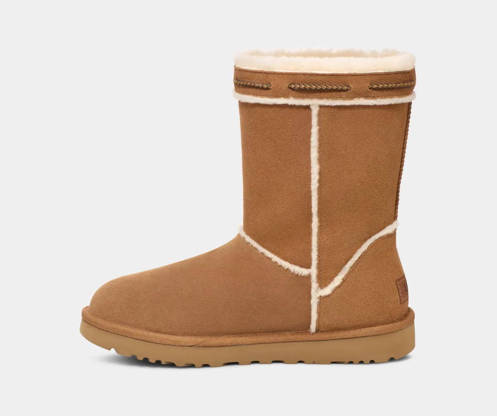 La nostra icona si rinnova con un raffinato dettaglio intrecciato sulla morbida pelle scamosciata e dettagli in shearling, senza dimenticare l’inconfondibile fodera UGGplush™ in misto lana, per un comfort davvero irresistibile. La sua suola leggera garantisce ammortizzazione e presa per tutto il giorno, mentre la silhouette sobria si abbina praticamente a tutto.