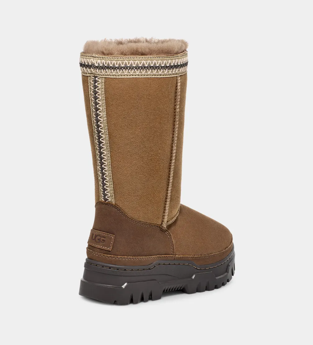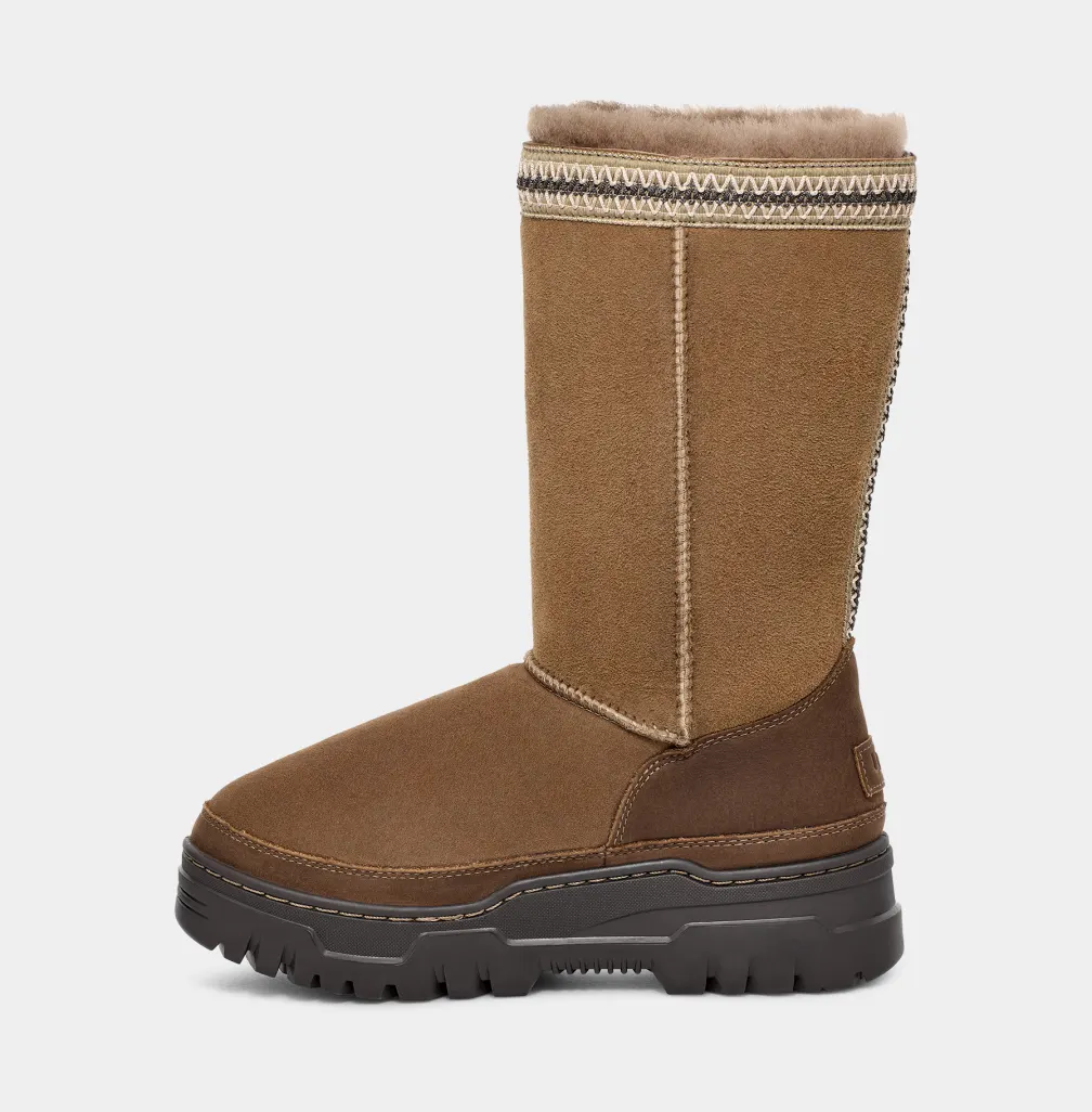 Classic Tall TrailGazer è l’evoluzione della nostra tradizionale teoria di design e punta a offrire un’incommensurabile dose di comfort all’aperto. La tomaia in montone impermeabile mette in risalto l’iconico UGGbraid e l’interno è completamente foderato in morbidissimo UGGplush™ per una comodità a 360°. Pensato per accompagnarti all’aperto, anche quando nevica, Classic Tall TrailGazer è certificato per temperature fino a -20 °C e dotato di suola in White Spider Rubber® per garantire una trazione superiore.
