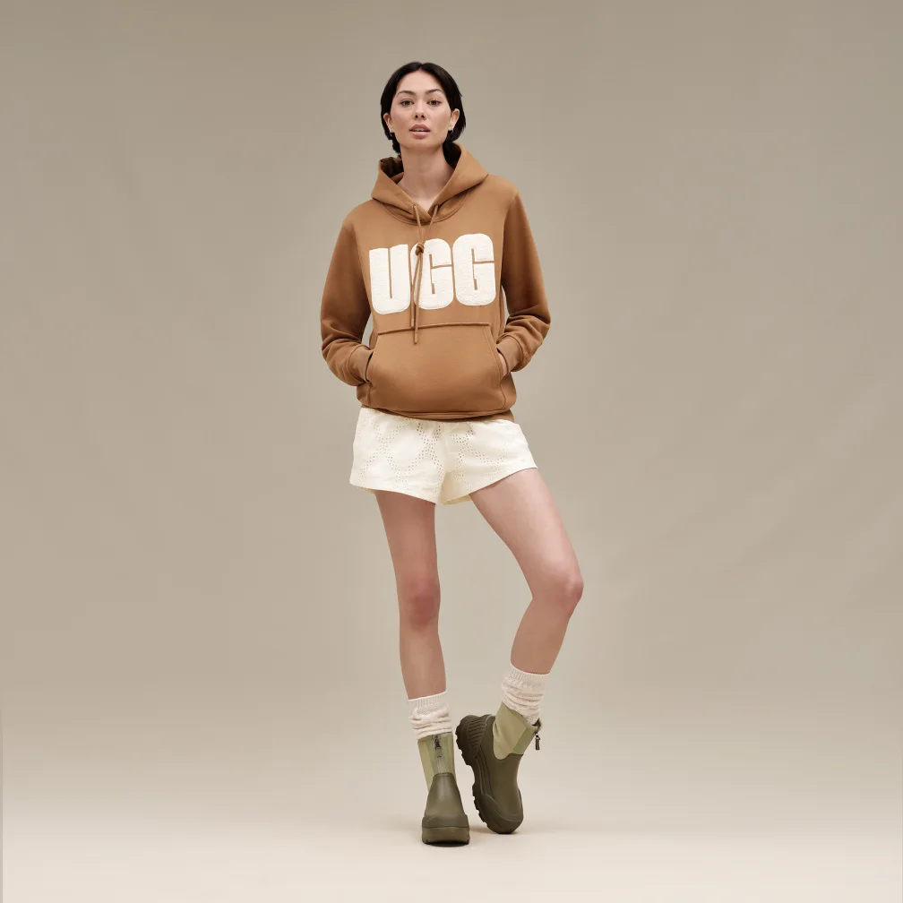 · Logo UGG® stampato a caldo in rilievo, etichetta in tessuto con logo UGG® sulla soletta, logo UGG® in TPU