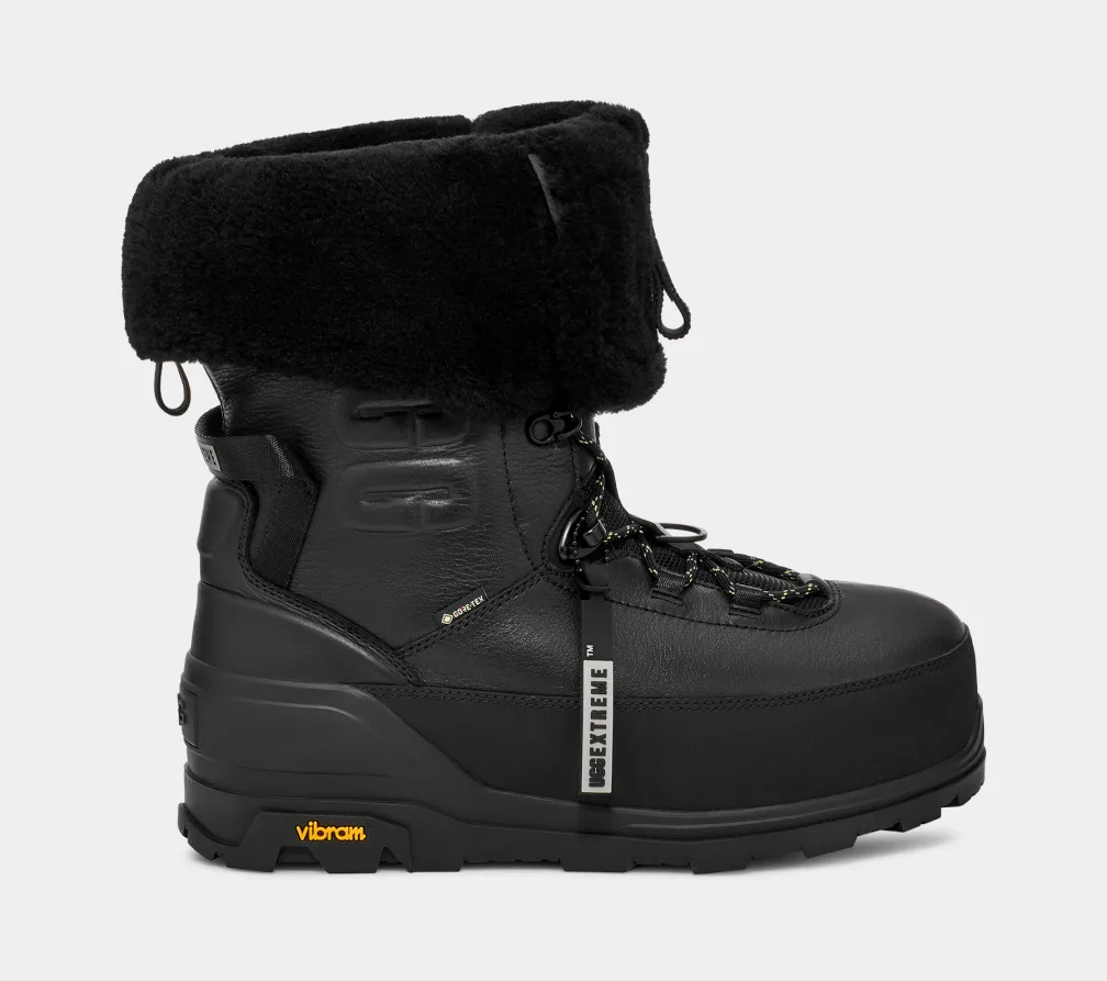 · Logo UGG® in rilievo sulla linguetta, logo grafico UGG® in rilievo sul gambale, logo UGG® sul tallone, logo UGGextreme™ serigrafato sul tirante del tallone, etichetta in tessuto GORE-TEX, logo Vibram® sul fianco della suola