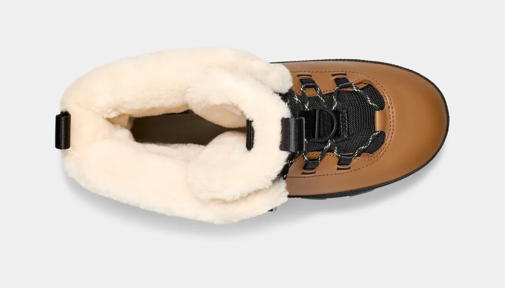 Mix di caratteristiche tecniche a elevate prestazioni, comfort garantito da UGGextreme™ e stile massimalista, questo stivale invernale è pronto ad affrontare il gelo, grazie alla certificazione per temperature fino a -32 °C. È realizzato in pelle impermeabile di prima qualità e include uno strato interno di GORE-TEX® impermeabile ma traspirante. Il collarino in tela presenta un’imbottitura senza piume in poliestere riciclato responsabilmente e può essere risvoltato o tenuto alto per difendersi ancora meglio dalle forze della natura. L’interno è rifinito con il nostro classico misto UGGplush™, che offre la morbidezza e il comfort tipici di UGG®. L’intersuola in EVA da canna da zucchero è completata dalla suola Vibram® ICETREK, per una trazione superiore.