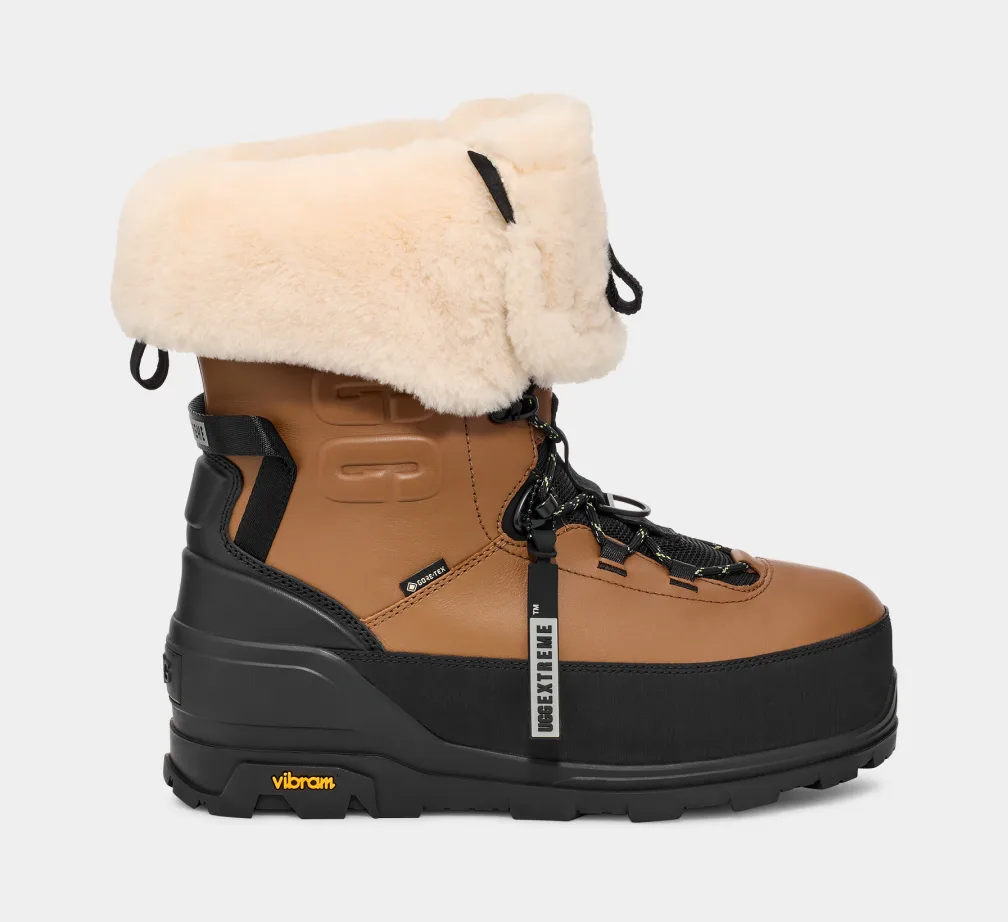 · Logo UGG® in rilievo sulla linguetta, logo UGG® sul tallone, logo UGGextreme™ serigrafato sul tirante del tallone, logo grafico UGG® in rilievo sul gambale, etichetta in tessuto GORE-TEX, logo Vibram® sul fianco della suola